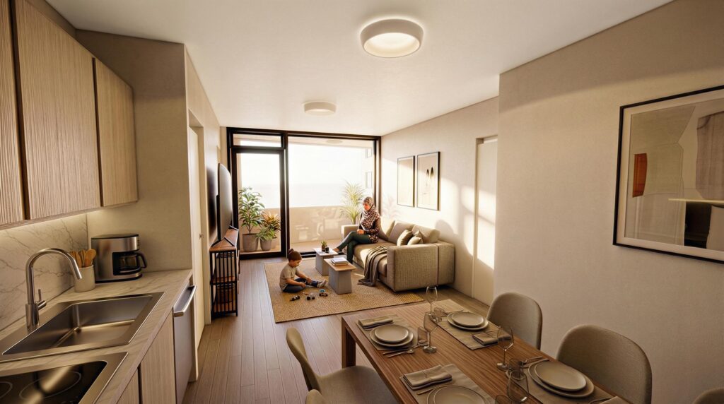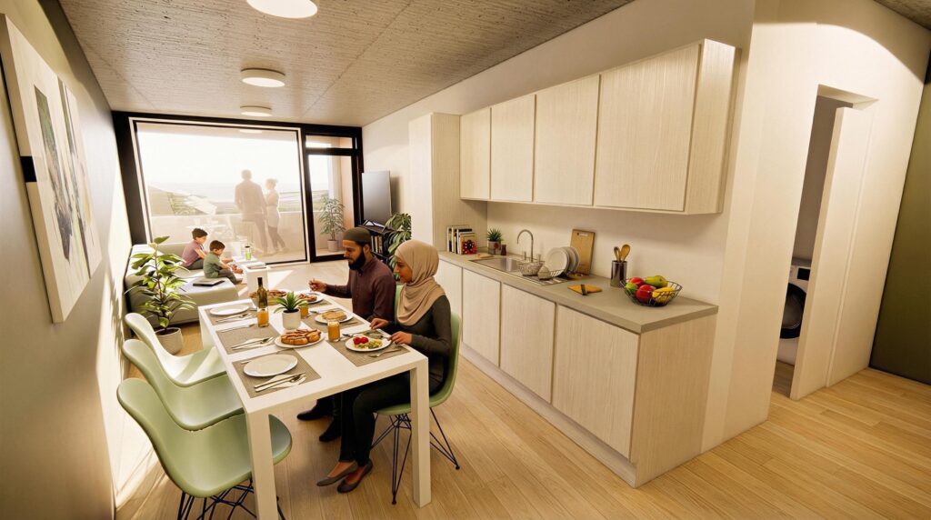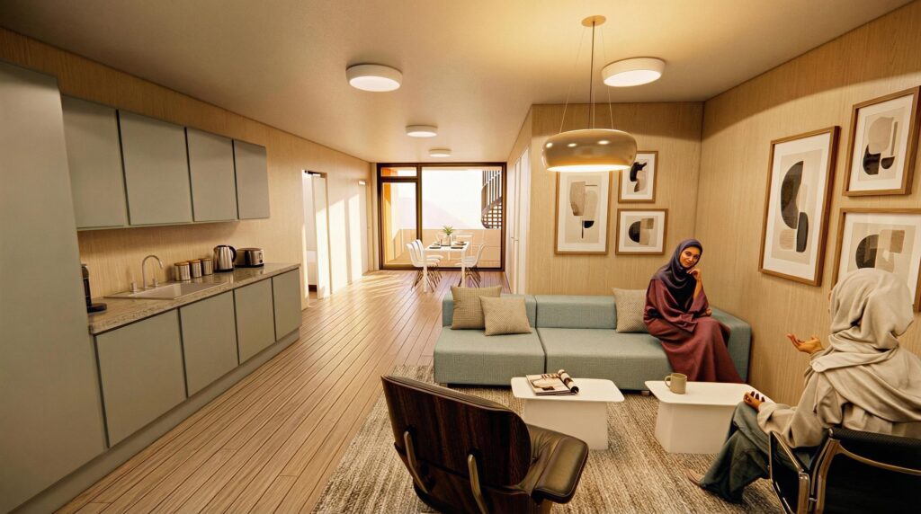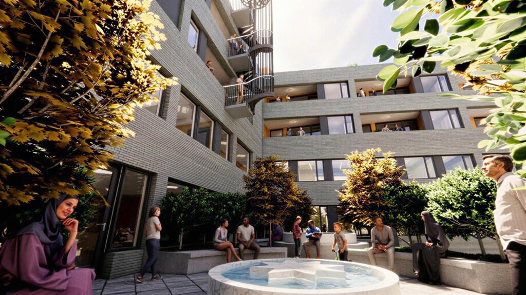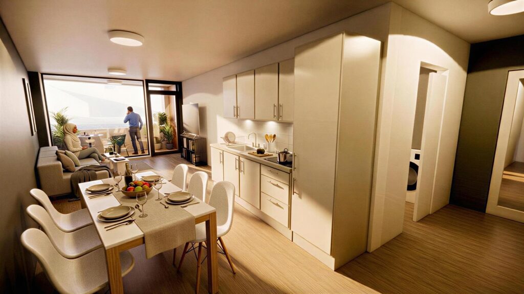 Prosjektet omfatter moderne leiligheter og et bredt tilbud av fasiliteter, blant annet kafé, restauranter, flerbrukshall, takterrasse og skjermede uteområder.