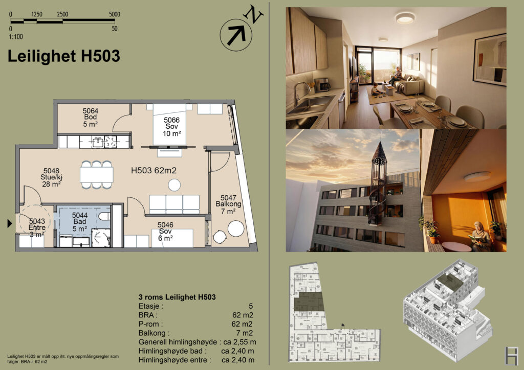 En effektiv og moderne 3-roms leilighet med god planløsning, egen balkong på 7 m² og gjennomgående god standard.