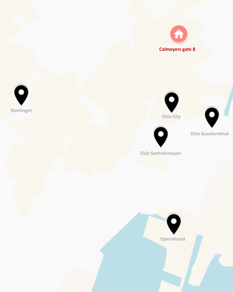 Gangavstand til Oslo City, Stortinget, og andre viktige kollektivknutepunkter.
